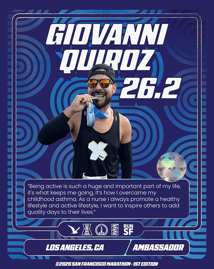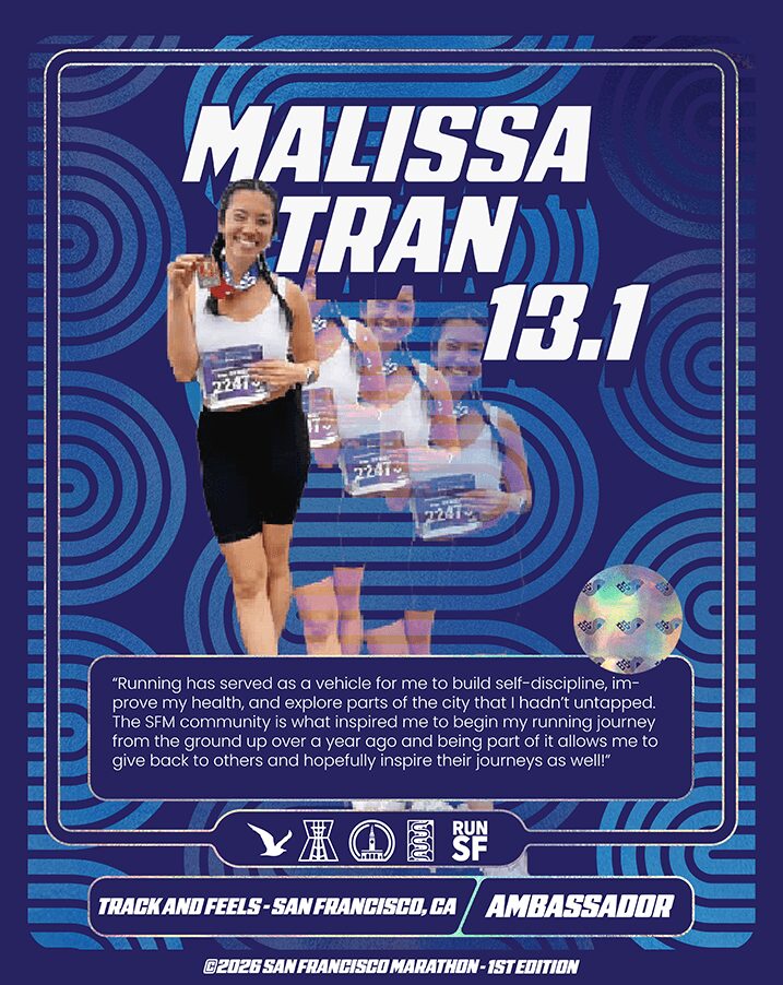 Our San Francisco Marathon Ambassadors are a passionate group of runners from all backgrounds who show up for each other and for this city. They share real experience, honest advice, and genuine encouragement, and they help make running in San Francisco feel welcoming and connected. They are the soul and spirit of our running community, and I’m proud to introduce you to them below.❤️